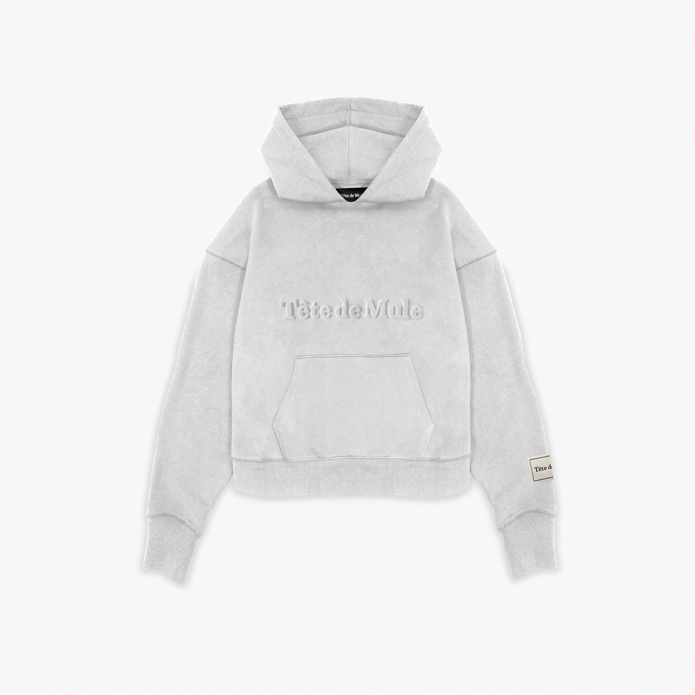 Oversized Hoodie in pure cotton jersey featuring a front Embossed Tête de Mule logo.