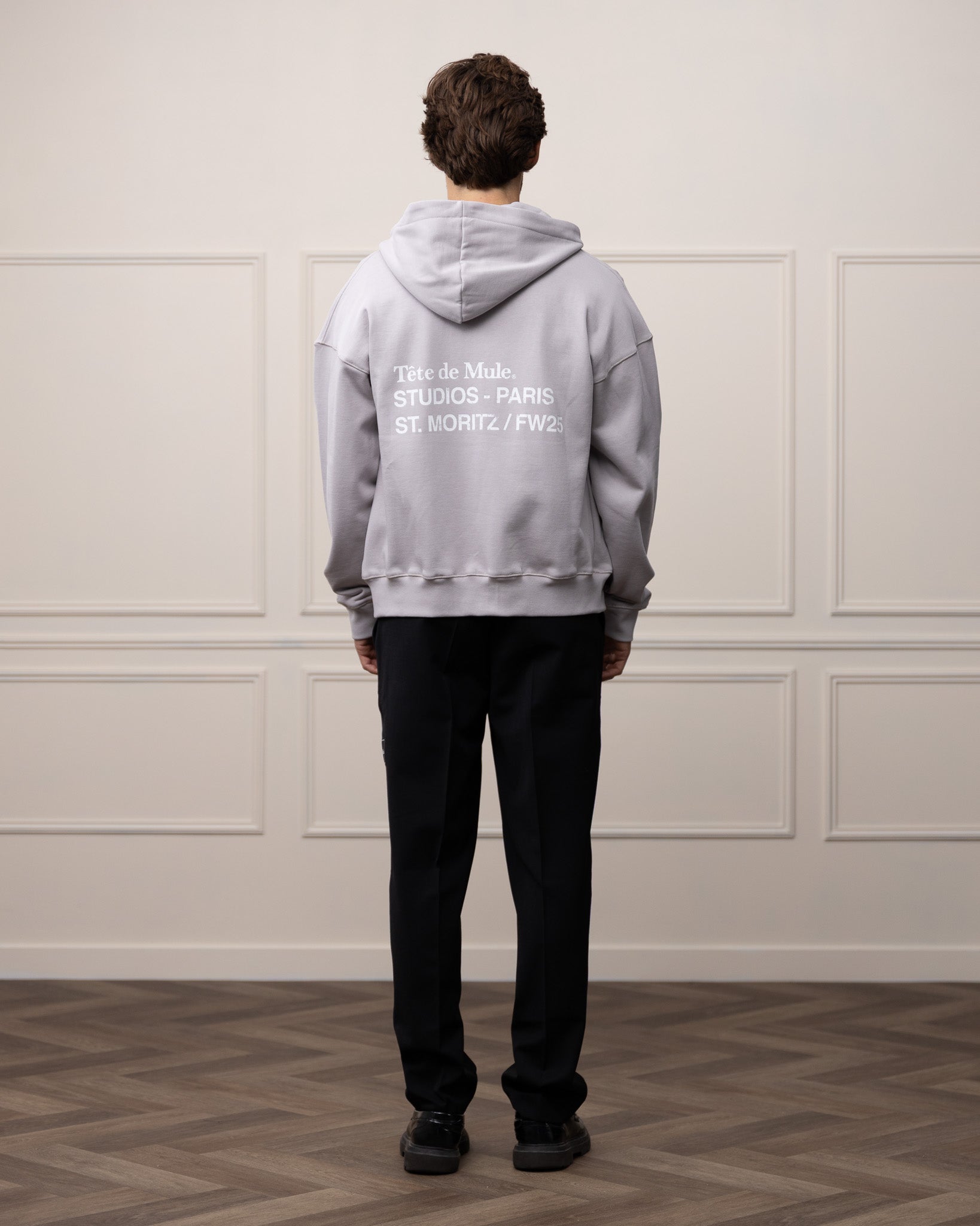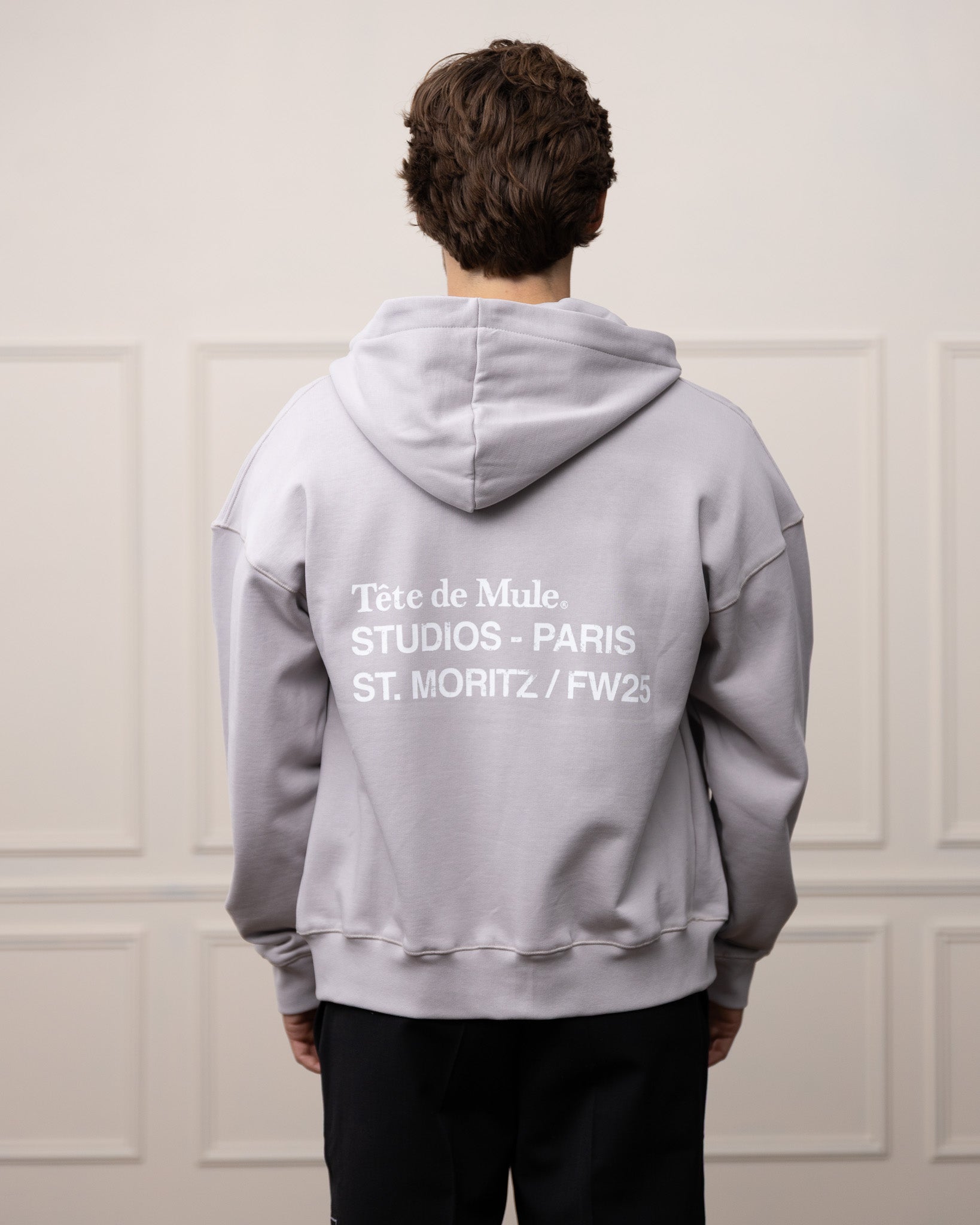 Oversized Zip Hoodie in pure cotton jersey featuring a back print of the Tête de Mule Studios Artwork.